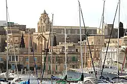 Kościół parafialny wśród zabudowy Ta’ Xbiex.