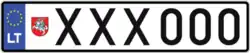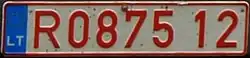 Pojazdy zarejestrowane czasowo na Litwie otrzymują tablice z czerwonymi znakami na białym tle.