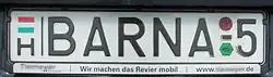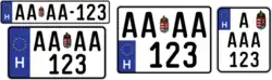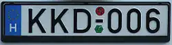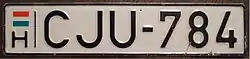 Węgierskie tablice rejestracyjne mają białe tło z naniesionymi na nie czarnymi literami. Z lewej strony tablicy umiejscowiony jest euroband.