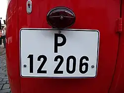 - samochody osobowe (czarne znaki, białe tło) OA do PO, a następnie inne serie zaczynające się na litery P i R;