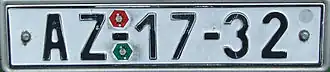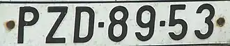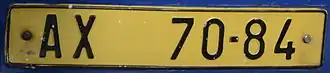 Na zwykłych tablicach rejestracyjnych grupa dwóch lub trzech liter towarzyszyła dwóm parom cyfr, oddzielonych myślnikiem. Później, w miejscu łącznika dla grupy liter, zarezerwowano miejsce na etykiety dla kontroli technicznej i pomiarów emisji.