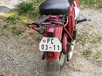 Motocykle były wyposażane w małe prostokątne tablice z ukośnymi rogami. Podobnie wyglądały tablice motorowerowe, które właściciel musiał sam namalować. Posiadały one odrębne kody wyróżników