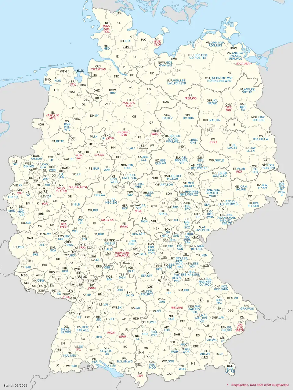 - jeżeli jest to duże miasto/powiat – 1 litera (wyjątki: duże/średnie miasta tzw. hanzeatyckie – Hamburg (HH), Brema (HB), Lubeka (HL), Rostock (HRO) itp.),
