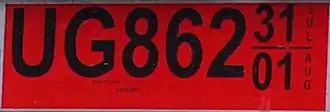 - ↑ Temporary number plates. [dostęp 2018-07-31]. [zarchiwizowane z tego adresu (2018-04-09)]. (ang.).