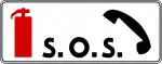 T-33: tabliczka wskazująca umieszczenie w zatoce telefonu alarmowego i gaśnicy | Wskazuje, że jest tu telefon alarmowy i gaśnica, tabliczkę stosuje się do znaku D-50. | ||||||||||||||||||||