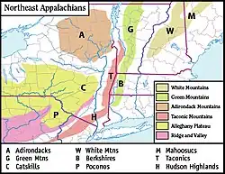 Góry Taconic powstały w wyniku kolizji Płyty Północnoamerykańskiej z łukiem wysp, podczas okresu Ordowiku, mniej więcej 440 milionów lat temu.