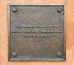 - ↑ Tadeusz Łomnicki. Biografia.. film.onet.pl. [dostęp 2016-04-28]. [zarchiwizowane z tego adresu (2018-03-16)].