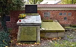 Tablica pamiątkowa z piaskowca umieszczona została w latach 50. XX wieku na frontowej ścianie kamienicy przy ul. Smolnej 11 w Warszawie[34].