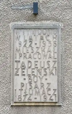 - ↑ Adam Jaśkow: Krakowskim szlakiem Tadeusza Boya Żeleńskiego. Towarzystwo Kultury Świeckiej im. Tadeusza Kotarbińskiego. [dostęp 2020-04-02].