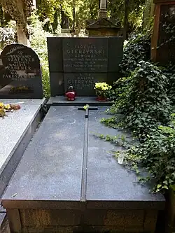 - ↑ Cmentarz Stare Powązki: TADEUSZ GIERZYŃSKI, [w:] Warszawskie Zabytkowe Pomniki Nagrobne [dostęp 2019-11-02].