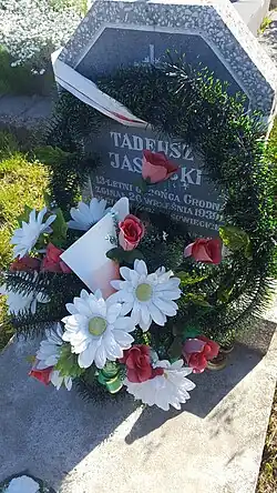 - ↑ Instytut Pamięci Narodowej- Białystok, 78. rocznica śmierci Tadeusza Jasińskiego, 13-letniego bohaterskiego obrońcy Grodna [online], Instytut Pamięci Narodowej - Białystok [dostęp 2024-01-26] (pol.).