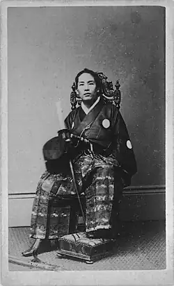 - ↑ Klasa arystokracji okresu 1869–1947, która zastąpiła system feudalnych panów. Powstała w ramach zachodnich reform restauracji Meiji, połączona w jedną grupę i pozbawiona przywilejów terytorialnych. Została zorganizowana w stylu europejskim z rangami: księcia, markiza, hrabiego, wicehrabiego i barona. Po 1889 roku klasa ta tworzyła izbę wyższą japońskiego parlamentu. Została zlikwidowana na mocy konstytucji z 1947 roku.