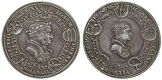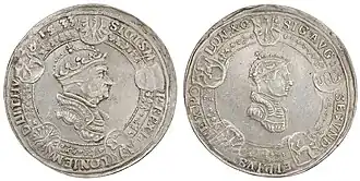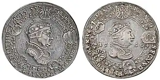 - ↑ Janusz Kurpiewski, Katalog monet polskich 1506–1573, Warszawa: Polskie Towarzystwo Numizmatyczne, Zarząd Główny, 1994, s. 40, ISBN 83-85057-24-2.