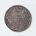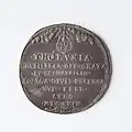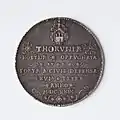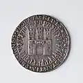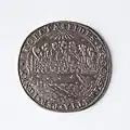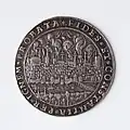 Na rewersie w napisie wymienieni są bohaterscy mieszczanie oraz, w przypadku typu „Płonące miasto”, umieszczono w obłokach herb Torunia jako wyraźny symbol Bożej opieki nad miastem[11].