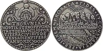 CIVIT THORVN HOSTILITER OPPVAGNATA ET A CIVIB FORTITER DEFENSA XVI FEBR AN MDCXXIX