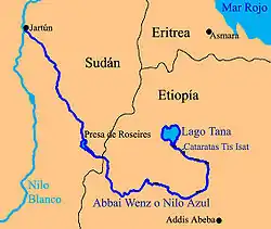 W 1770 do jeziora Tana dotarł szkocki podróżnik James Bruce (1730–1794), poszukując źródła Nilu Błękitnego. Bruce nie był pierwszym Europejczykiem, który tam przebywał, bo już na początku XVII wieku do jeziora dotarli portugalscy jezuici Pedro Páez, (który odnalazł to miejsce i zbudował w pobliżu kościół) i podążający za nim Jerónimo Lobo.