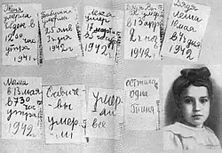 W początkach stycznia 1942 roku 74-letniej babki Tani lekarze postawili diagnozę: dystrofia III stopnia (w ZSRR dystrofią nazywano eufemistycznie chorobę głodową), wymagająca natychmiastowej hospitalizacji. Babka odmówiła, chcąc pozostać z rodziną. Zmarła 25 stycznia. Tania w swoim notatniku, pod literą „B” zapisała:
