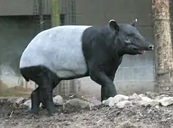 Tapir czaprakowy[25], tapir malajski[26], tapir czaprakowaty[26] (Tapirus indicus) – gatunek ssaka nieparzystokopytnego z rodziny tapirowatych (Tapiridae). Występuje w Azji Południowo-Wschodniej. Duży roślinożerny ssak o krępej sylwetce, długości ciała dochodzącej do około 310 cm i czarno-białym kolorze futra. Zamieszkuje tropikalne lasy pierwotne jak i wtórne. Według IUCN jest zagrożony wyginięciem.