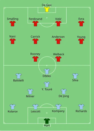 Trofeum zdobył Manchester United po raz 19. W meczu wygrał 3:2, pomimo że po pierwszej połowie przegrywał 0:2 po golach Joleona Lescotta i Edina Džeko. W drugiej połowie do bramki City trafiali Chris Smalling i dwukrotnie Nani