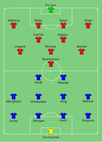 Mecz zakończył się zwycięstwem Manchesteru United 2:1, który zdobył to trofeum po raz 21. Bramki zdobyli Jesse Lingard i Zlatan Ibrahimović dla Manchesteru i Jamie Vardy dla Leicester.