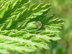 - 1 2 3 Lech Borowiec. Nowe stanowiska gatunków z rodzaju Cassida L. (Coleoptera: Chrysomelidae). „Wiadomości Entomologiczne”. 22 (1), s. 62-63, 2003.