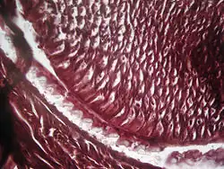 Chrzęstny szkielet tarki pokryty jest błoną. Wierzchołki osadzonych na niej zębów są skierowane do tyłu. Zęby są często nasycone związkami mineralnymi, np. magnetytem. Zużyte zęby wypadają i są zastępowane nowymi, narastającymi stale od tyłu[1].