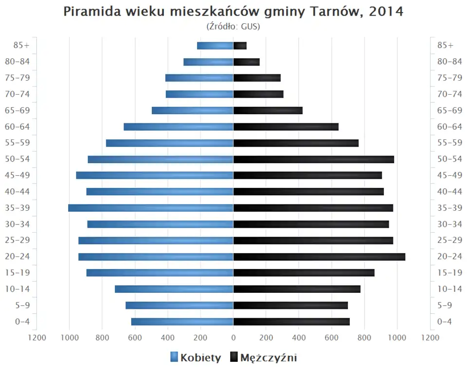 Piramida wieku mieszkańców gminy Tarnów w 2014 roku[19]