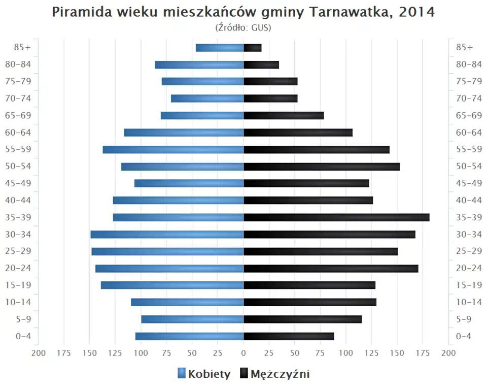 - Piramida wieku mieszkańców gminy Tarnawatka w 2014 roku[1].