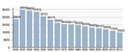 Zmiany w populacji terenu miasta w latach 1940–2015: