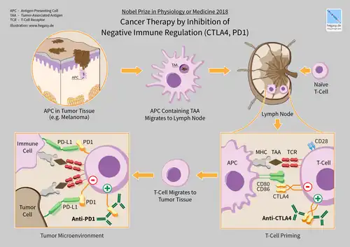 - ↑ Nagroda Nobla w dziedzinie medycyny. Laureaci to James P. Allison i Tasuku Honjo. gazeta.pl, 2018-10-01. [dostęp 2018-10-01].