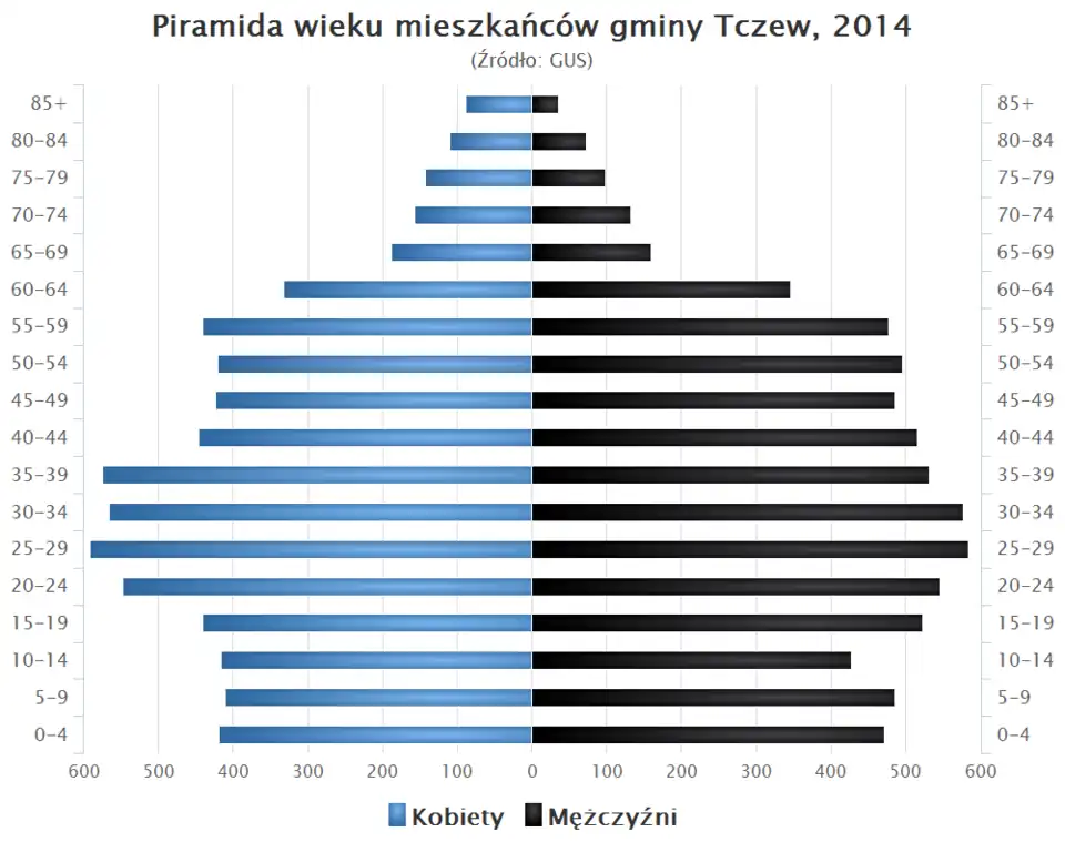 - Piramida wieku mieszkańców gminy Tczew w 2014 roku[1].