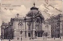 Teatr jest dziełem architektów, którzy zaprojektowali 47 budynków teatralnych w krajach Europy. Budynek Teatru Komedii został zbudowany w przeciągu jednego roku, w 1896 r. w oparciu o projekt wiedeńskich architektów Ferdinanda Fellnera i Hermanna Helmera. W tamtym czasie za budynkiem był bagnisty teren. Architektura budynku reprezentuje eklektyczny neobarok. Wnętrza są bogato zdobione złoceniami i dekoracją rzeźbiarską. Dekoracje elewacji są utrzymane w stylu barokowym. Wielkość bryły, jej uroczystość i wysokość miała wyróżniać teatr z miejskiego otoczenia. Budynek teatru został zbombardowany w ostatnich miesiącach II wojny światowej. W roku 1949 teatr został upaństwowiony. Po odbudowie został otwarty w 1951 roku pod nazwą Teatr Węgierskiej Armii Ludowej (Magyar Néphadsereg Színháza). Do dawnej nazwy powrócił w roku 1961. W roku 1967 teatr otrzymał scenę kameralną o nazwie „Teatr Pesztu” (Pesti Színház) o 530 miejscach w budynku przy Váci útca. W roku 1974 budynek został objęty ochroną konserwatorską.