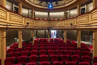 Oryginalnie budynek był podzielony na cztery piętra: parter, krzesła na I piętrze, balkon i galerię. Scenę oświetlano przy pomocy oświetlenia olejowego, później naftowego[1]. W wyniku przebudowy z lat 2007–2012 budynek uzyskał dwie dodatkowe kondygnacje podziemne mieszczące magazyny oraz zaplecze sanitarne (pierwotnie teatr nie był podpiwniczony). W teatrze zachowano pierwotny układ foyer – widownia – scena – zascenie. Po przebudowie Teatr ma 165 miejsc siedzących[4].