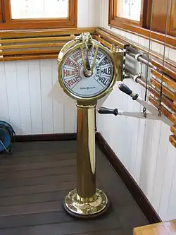 Nadany sygnał jest odbierany i pokazywany na podobnej tarczy w maszynowni. Następnie mechanicy obsługujący maszynę potwierdzają odebranie sygnału.
