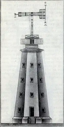 W 1835 roku, rozpoczęto budowę telegrafu optycznego Warszawa – Sankt Petersburg systemu Pierre-Jacques Chatau (ros. Петр Шато). Linia składała się ze 149 stacji. Semafor telegrafu systemu Pierre-Jacques Chatau miał postać obracającej się wokół osi belki o długości ok. 3 metrów, do której na jednym z końców, był przymocowany dodatkowy kwadrat. Do komunikacji nocnej na trzech końcach semafora mocowano latarnie. Semafor był umieszczony na wieży o wysokości 15 – 20 metrów.