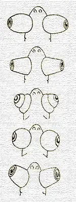 Ciało krótkie, owalne, o długich płetwach, wyglądem zbliżone do welona, płetwa grzbietowa duża i wyprostowana. Charakterystyczną cechą tej odmiany są duże, dobrze wykształcone i wyłupiaste oczy. Ze względu na ich kształt wyróżnia się oczy: jajowate, kuliste, pierścieniowato-kuliste, pierściemowato-stożkowate, sferoidalne, bocznie stożkowato-ścięte oraz stożkowato-ścięte w kierunku do przodu. Oczy o takich kształtach pojawiają się dość wcześnie, po ok. 60 dniach od wyklucia z ikry.[1]
