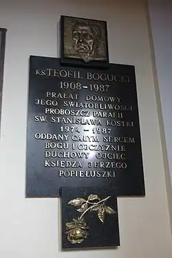 - Tablica upamiętniająca ks. Teofila Boguckiego na ulicy jego imienia, na Starym Żoliborzu w Warszawie