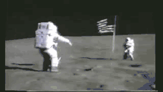 - Zarzut: Według zwolenników teorii spiskowej na tym filmie oraz kilku innych z misji Apollo astronauta podnoszony jest z ziemi na linie; piach spod butów wydaje się opadać z większym przyspieszeniem niż człowiek.