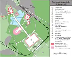 - ↑ Documentation Centre Nazi Party Rally Grounds [online], nuremberg.de [dostęp 2024-04-26] [zarchiwizowane z adresu 2009-04-04] (ang.).