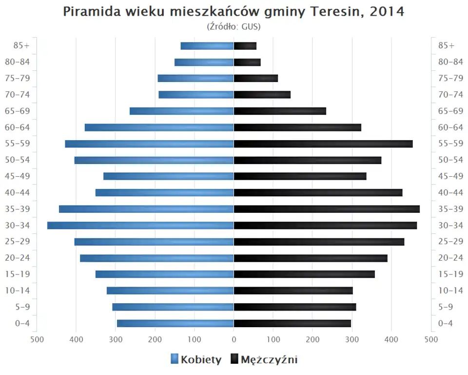 - Piramida wieku mieszkańców gminy Teresin w 2014 roku[7].