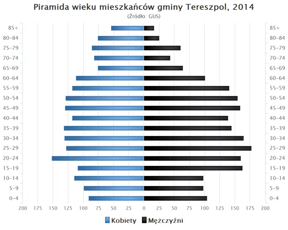 - Piramida wieku mieszkańców gminy Tereszpol w 2014 roku[1].