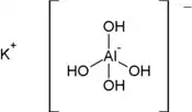 Atomem centralnym w tej cząsteczce jest glin. Wraz z czterema grupami wodorotlenkowymi tworzy wewnętrzną strefę kompleksu oraz anion kompleksowy, o ładunku ujemnym. W zewnętrznej strefie kompleksowej występuje jeden kation potasu, który dzięki swemu dodatniemu naładowaniu równoważy ładunek cząsteczki.