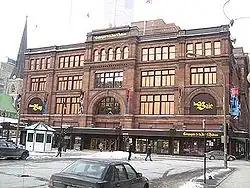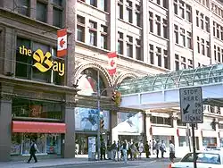 - Kwatera główna The Bay znajduje się w Simpson Tower w Toronto. Przy ulicach Queen St. i Yonge St. w Toronto działa gigantyczny (93 tys. m²), sztandarowy sklep The Bay, największy dom towarowy Kanady. Wypełnia szczelnie kilkusetmetrową przestrzeń pomiędzy dwoma przecznicami, zaś napowietrzny pomost łączy go z innym kolosem: Eaton Centre.