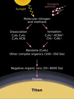 - ↑ J.H. Waite Jr. i inni, The process of tholin formation in Titan’s upper atmosphere, „Science”, 316 (5826), 2007, s. 870–5, DOI: 10.1126/science.1139727, PMID: 17495166, Bibcode: 2007Sci...316..870W.
