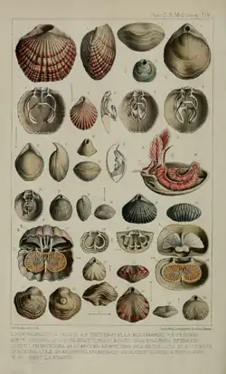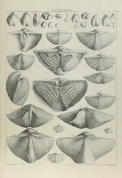 Ramienionogi ordowickie (plansza z monografii Davidsona, 1869)Volume I: A General Introduction (1853)[12]