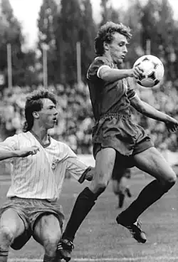 Thomas Doll w barwach Dynamo Berlin w meczu z FC Rot-Weiß Erfurt (1989).Thomas Doll w barwach Dynamo Berlin w meczu z Dynamo Drezno (1987).
