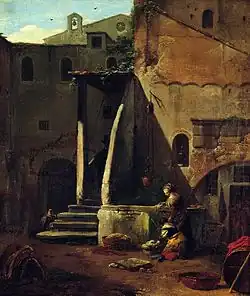 W Muzeum Narodowym w Warszawie znajduje się obraz Praczki na dziedzińcu.