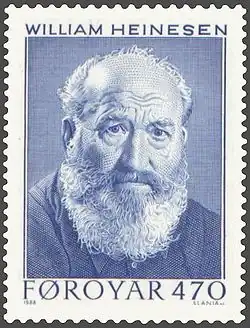 - William Heinesen – farerski pisarz, tworzący w języku duńskim, urodzony w 1900. Za swą powieść „Wyspy Dobrej Nadziei” (duń. Det gode håb) otrzymał w 1964 nagrodę literacką Rady Nordyckiej. Gdy w 1981 rozległy się pogłoski, iż może otrzymać literacką nagrodę Nobla, Heinesen napisał do Akademii Szwedzkiej list, w którym zrzekł się swej kandydatury, wyjaśniając to słowami: (...) język farerski stworzył świetną literaturę i byłoby bardzo rozsądnie przyznać Nagrodę Nobla osobie piszącej po farersku. Gdyby przyznano by ją mnie, otrzymał by ją autor, piszący po duńsku, a w rezultacie zadano by cios próbom stworzenia niezależnej kultury farerskiej (...)[7]. Heinesen zmarł w 1991 roku.