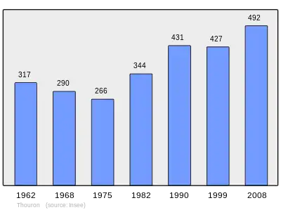 Według danych na rok 1990 gminę zamieszkiwało 431 osób, a gęstość zaludnienia wynosiła 31 osób/km² (wśród 747 gmin Limousin Thouron plasuje się na 282. miejscu pod względem liczby ludności, natomiast pod względem powierzchni na miejscu 472.).
