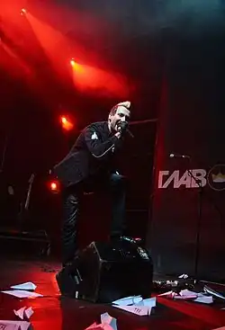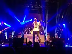 ![]() Thousand Foot Krutch w czerwcu 2009 – wokalista Trevor McNevan i basista Joel Bruyere | |